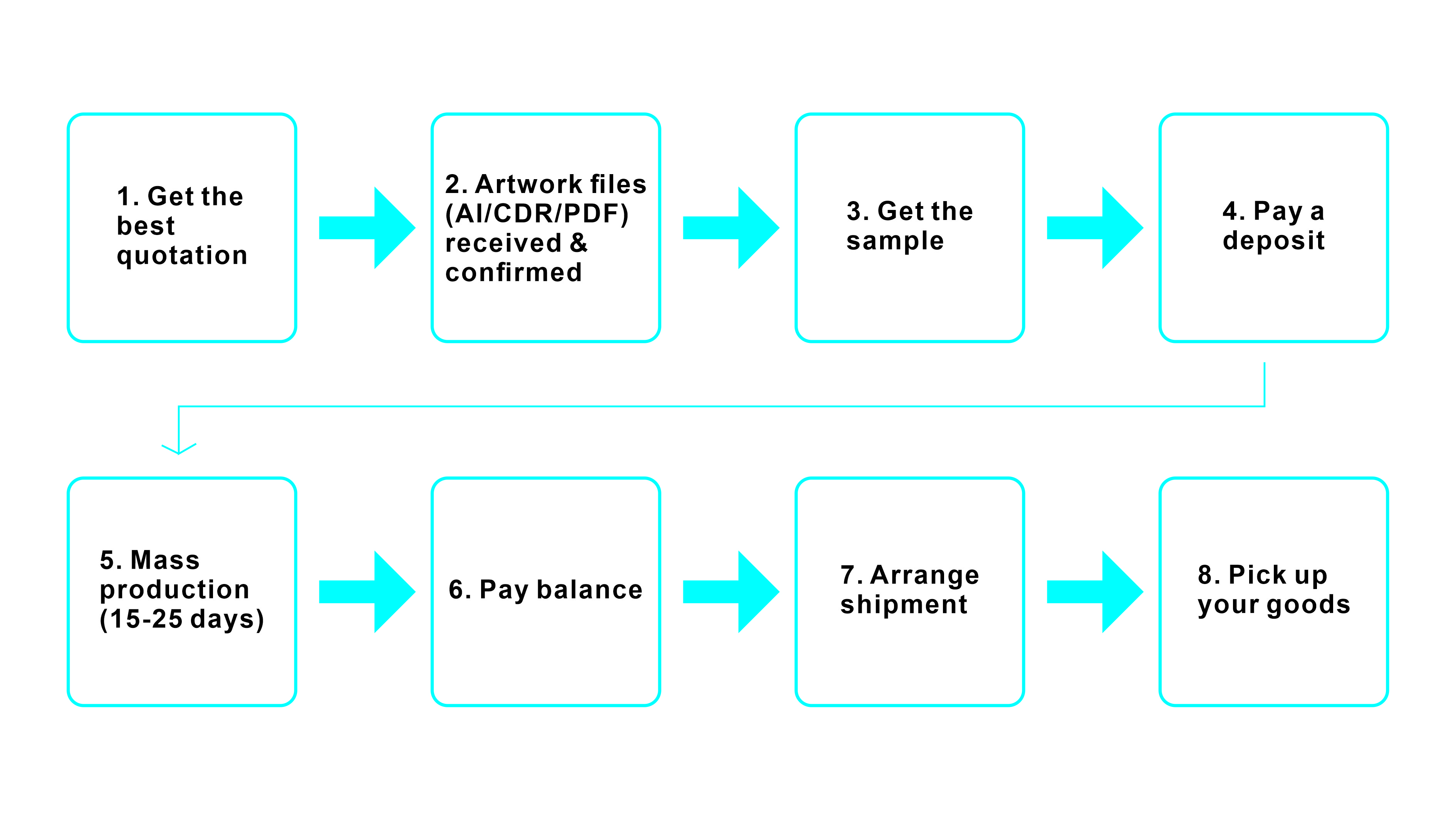 7. Arrange shipment (by air 5-8 days; by sea 25-32 days)