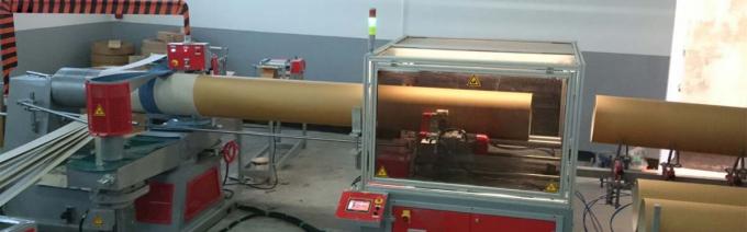 The spiral wound paper tube is fed into the cutting unit to cut the paper tube to the height required by the customer. A rotary knife or saw will come out on the tube and cut it to the desired length. The length of the tube depends on the distance between the knives. If longer tubes are to be made, the spacing of the knives will need to be larger.
