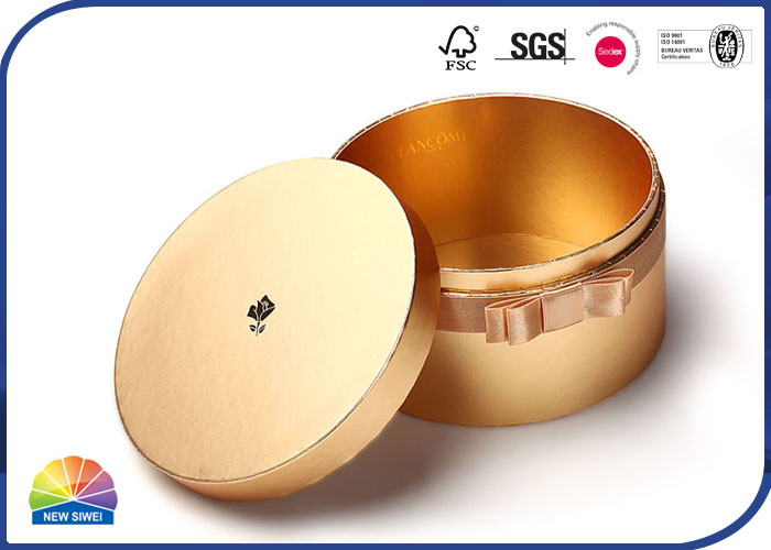 Luxury cosmetic packaging box, ribbon decorated round gift box paper tube