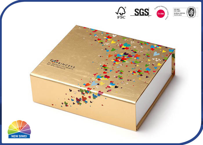 | Product Name | Luxury gold foil gift box hinged lid paper hamper box |