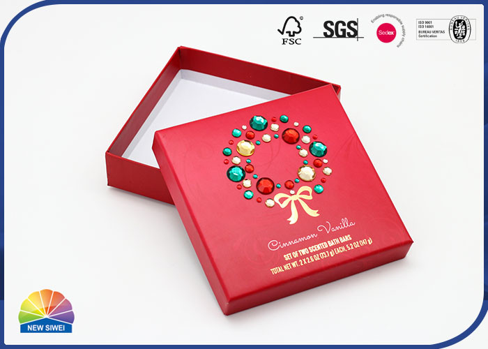 Tag words: Acrylic Diamond Decorated Present Paper Red Box; Paper Red Box Gold Stamping Logo