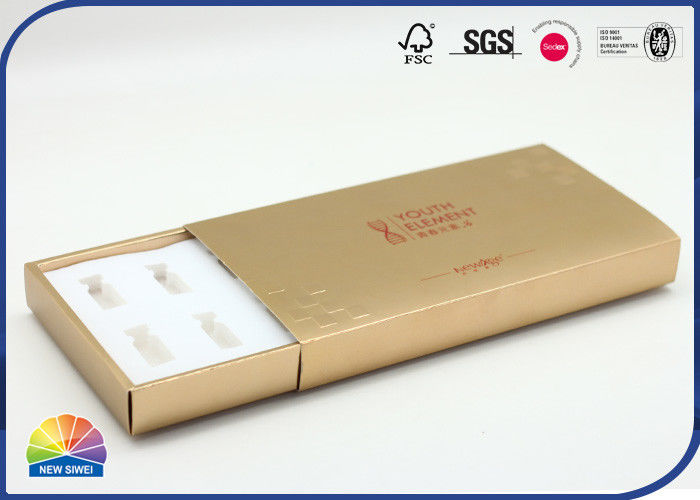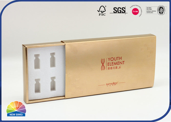 Stamping Logo Cosmetic Drawer Paper Box for Lyophilized Powder Golden Paper Gloss Set Gift Packaging