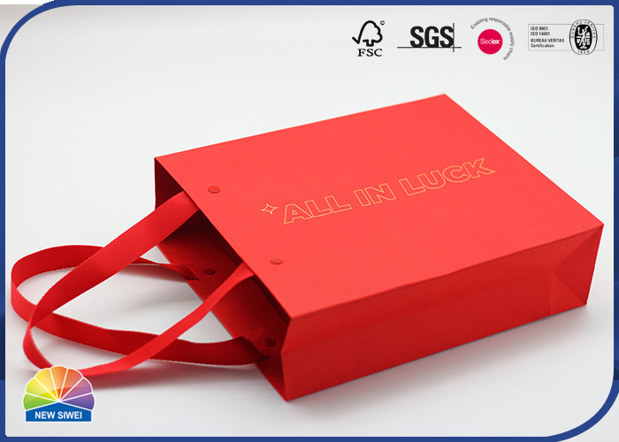 New Year Festival Gift Package Red Paper Bag Customized Gold Stamping