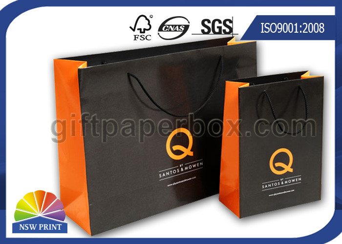 Custom Glossy Black Shopping Paper Bags with PP Rope Handle OEM / ODM