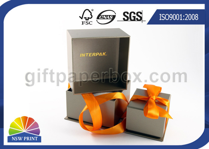 Silver Color Cardboard Paper Jewelry Box For Gift Packaging With Ribbon Bowknot