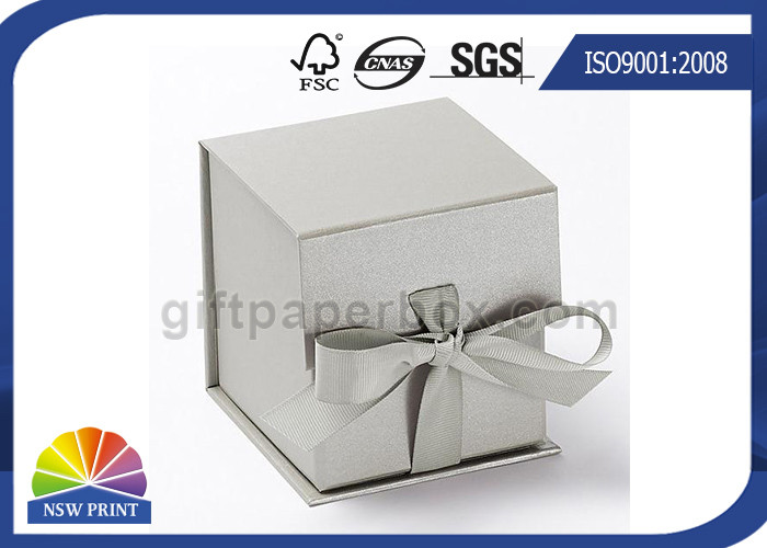 Logo Printed Jewelry Gift Box with Ribbon Closure , Rigid Cardboard Paper Gift Box