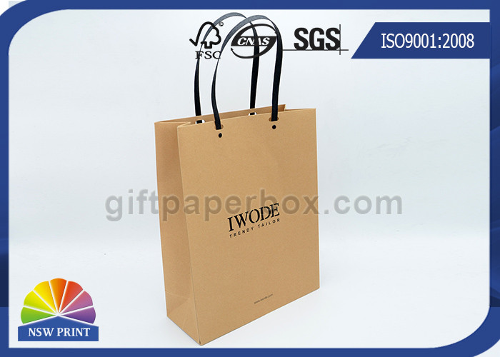 Logo Printed Kraft Paper Bags Plastic Handles brown paper shopping bags FOR Garment