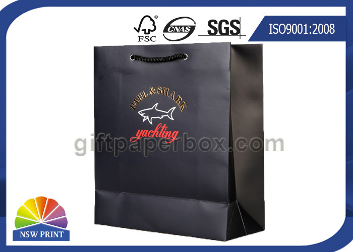 | Product Name | Branded Custom Made Gold Foil Logo Matte Black Paper Shopping Bags with PP Handle |