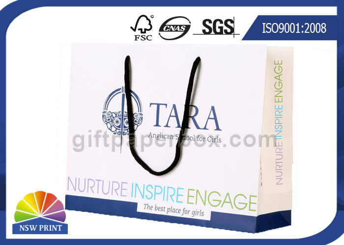 Fancy Personalized Printing White Paper Bags with Long Cotton String Handle