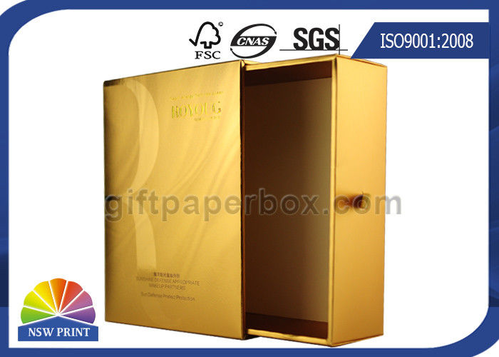Gold Metallic Paper Gift Box Cardboard / Luxury Cosmetic Cosmetic Slide Box Packaging