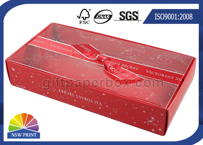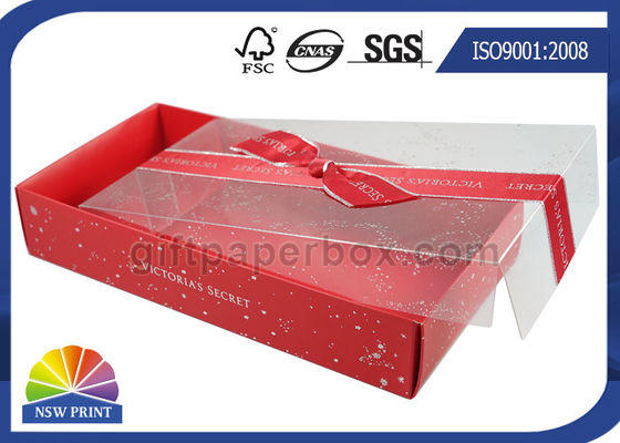 Imprint Ribbon Bowknot Decorated Transparent PVC Lid Foldable Paper Gift Box