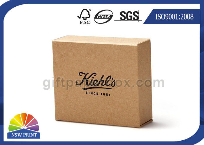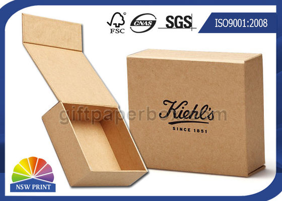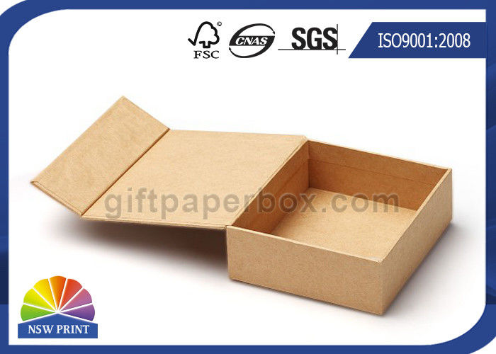 Logo Imprint Brown Kraft Paper Gift Box / Magnetic Closure Hinged Lid Cardboard Box