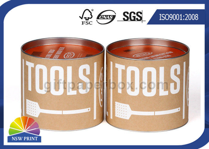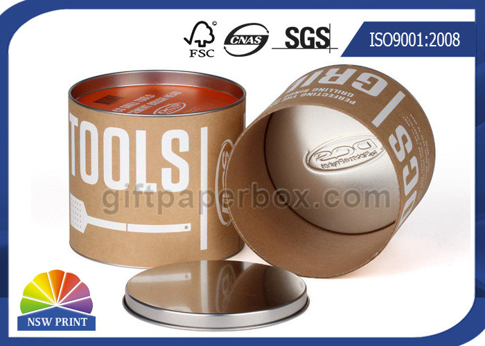 | Size(D*H): | Customized , We Can Make Any Size. | Material: | 130g Kraft Paper(liner), Kraft Paperboard(core), Metal Lid And Base |
