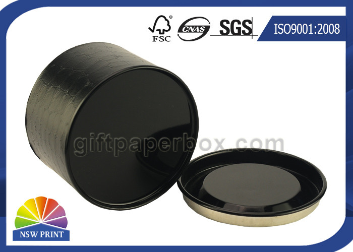 Black Metal Plug/Cap and Bottom Cylinder Round Paper Can Container