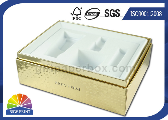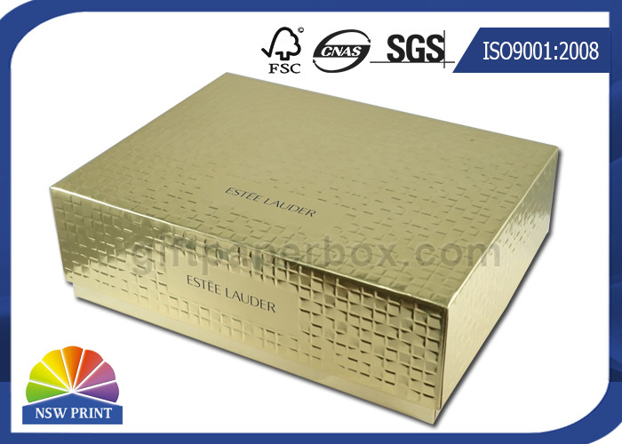 Embossing Textured Gold Metallic Rigid Paper Box Packaging for Cosmetic Gift Pack