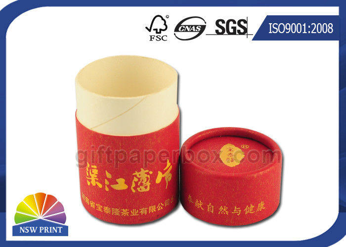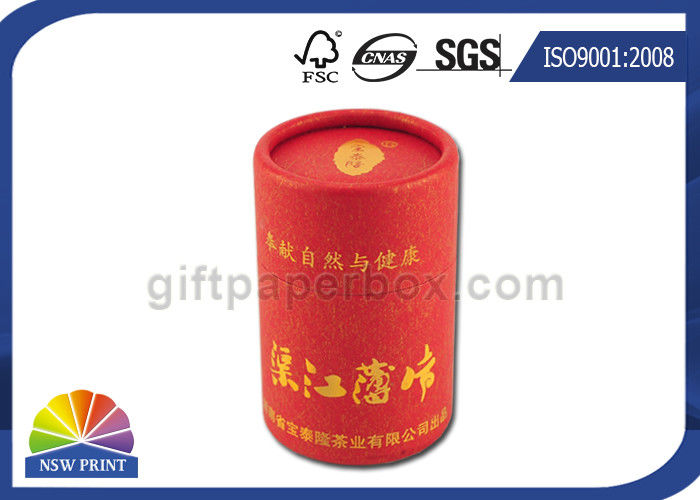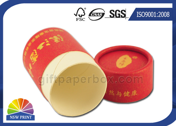 Red Round Cylinder Paper Packaging Tube With Gold Hot Stamping SGS Approval
