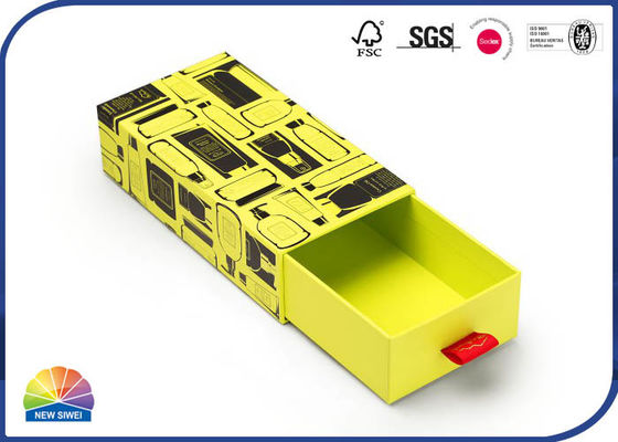 The drawer paper box is also called match box, because it has a match box sytle. Some people also refers it to as drawer style box. The rigid drawer box consists of 2 parts, the outer cover and the inner tray. The outer cover can have opening on one sides or both sides. Both the outer cover and inner tray are made of 900gsm weight chipboard, which is about 1.5mm thickness. The chipboard can provide enough strenght and durability to the box. You can select different thickness chipboard to meet your packaging requirements. Our factory can print our client's design on the box with high qualiity finishing like gold foil stamping, spot uv, glittering and embossing. The small cotton handle can be printed with brand logo as well.