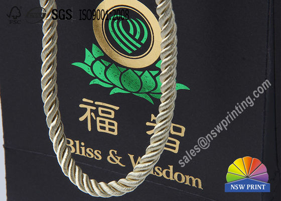 Green Color Foil Hot Stamping Black Cardboard Durability Paper Bags OEM/ODM