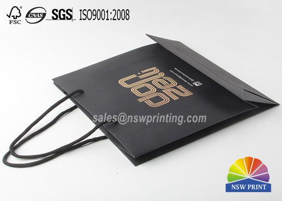 Custom Hot Stamping Logo Luxury Black Cardboard Paper Packaging Bag For Clothes