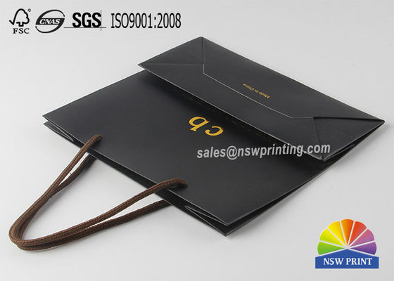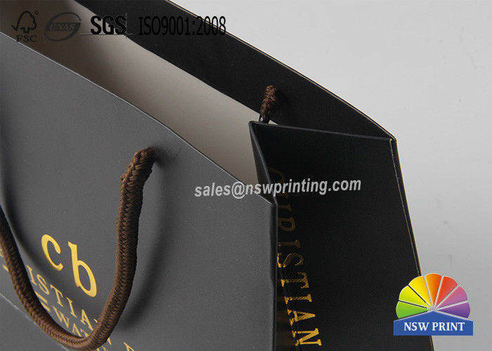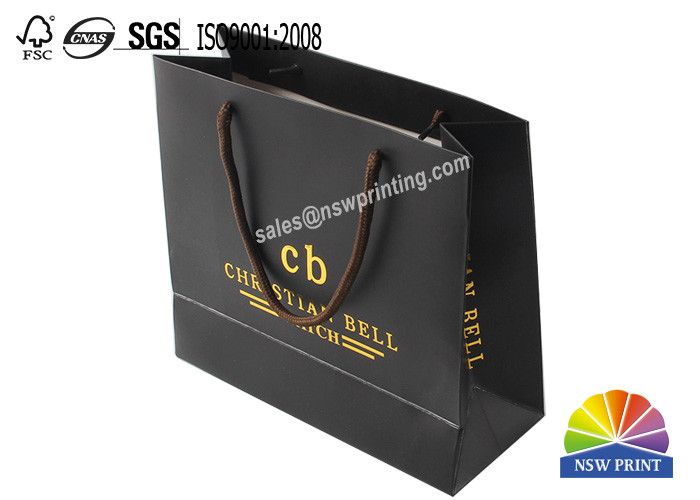 Logo gold foil hot stamping black matte shopper paper bags Fashion gift bags