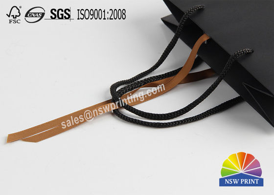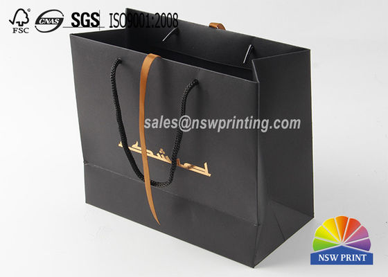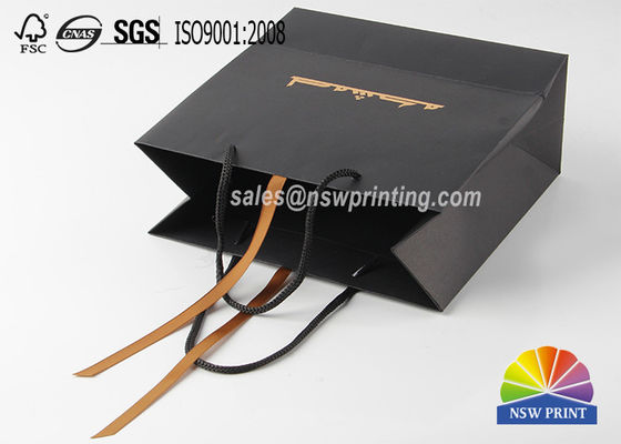 | Ribbon Decoration Luxury Black Gift Paper Bag With Logo Hot Gold Stamping | |